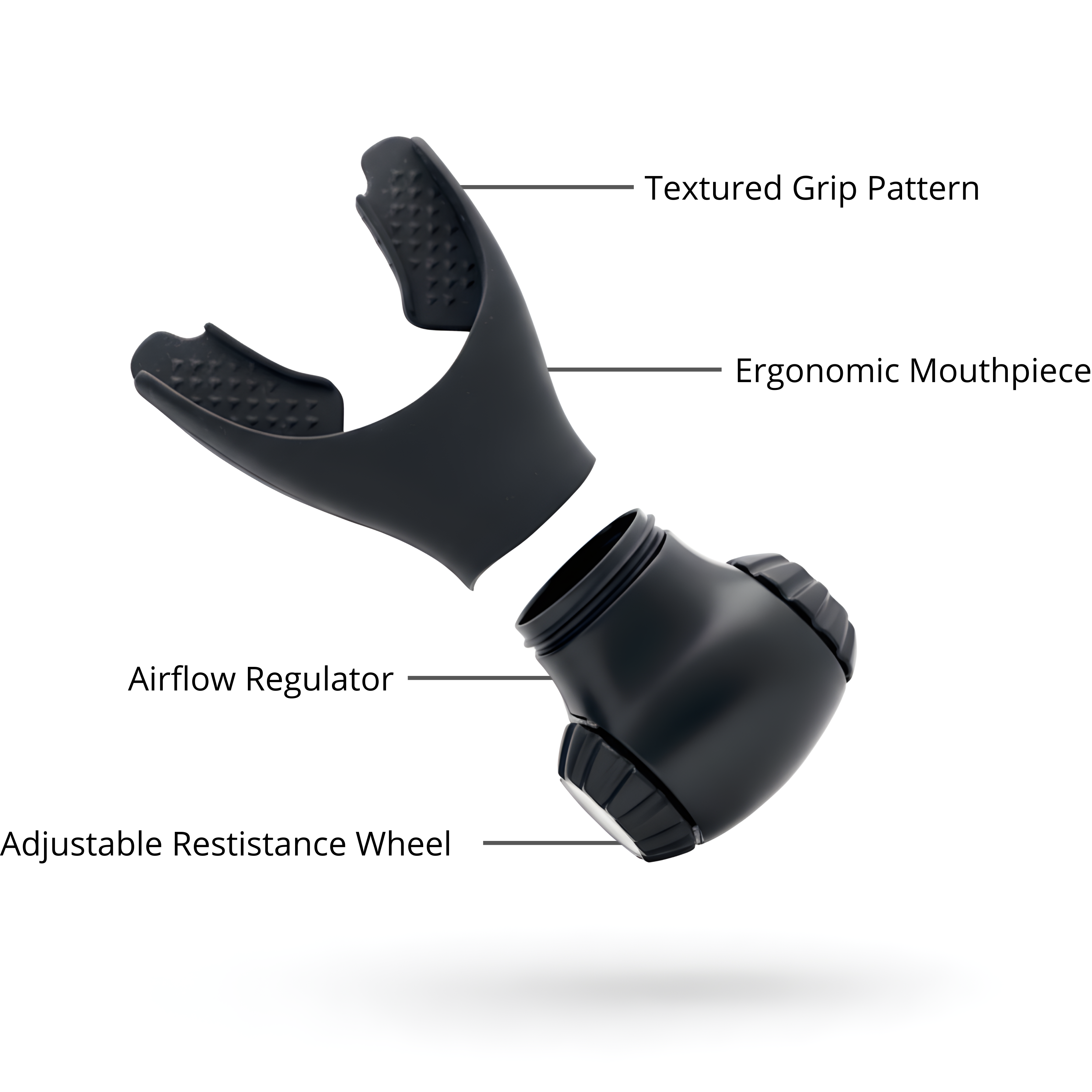 The FITAIR PRO 2.0 strength trains the respiratory muscles via breath resistance. A process scientifically referred to as Respiratory Muscle Training (RMT).