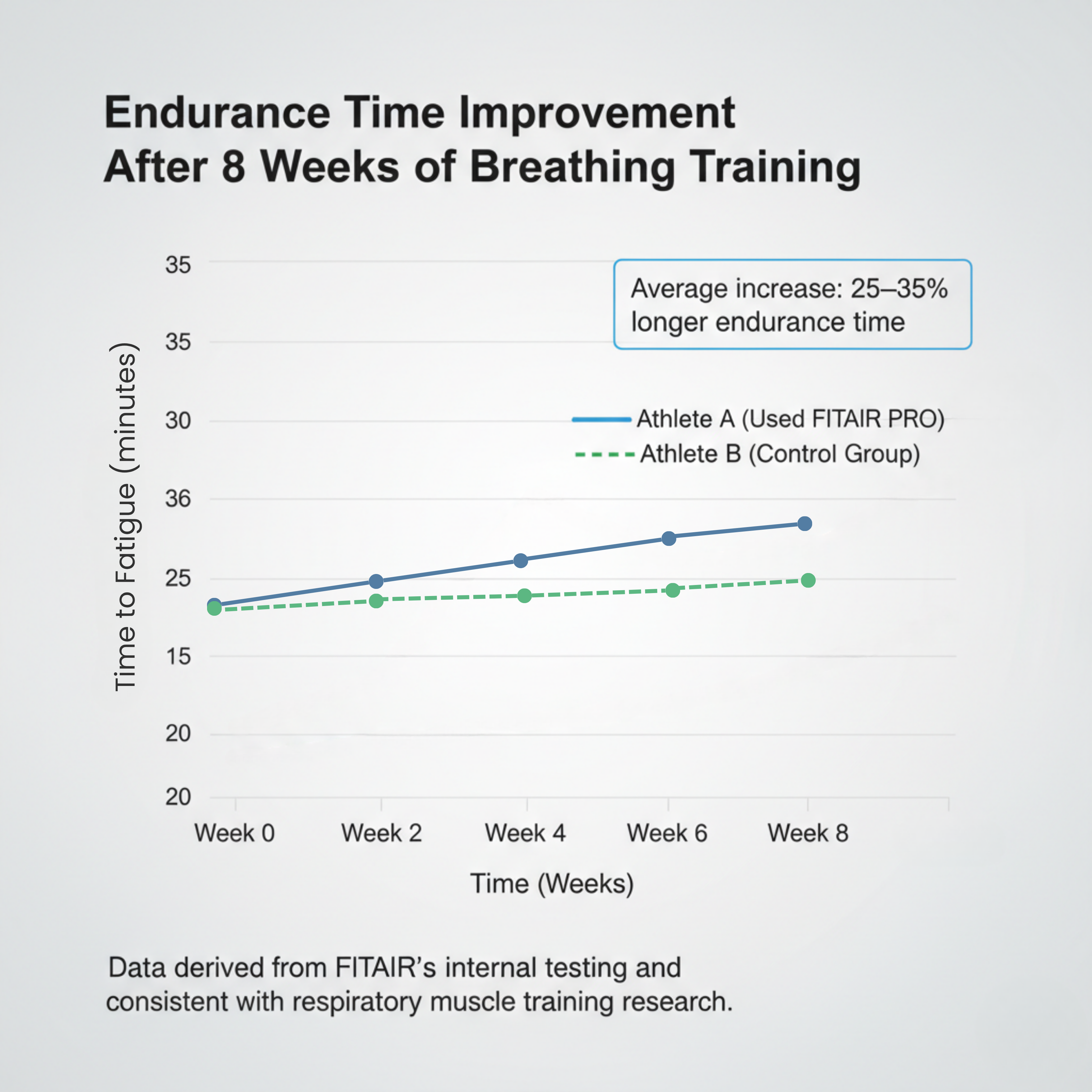 Both groups trained identically, but only one added FITAIR PRO 2.0. By strengthening the respiratory muscles, Athlete A extended endurance by up to 35%, proving that smarter breathing leads to stronger performance.